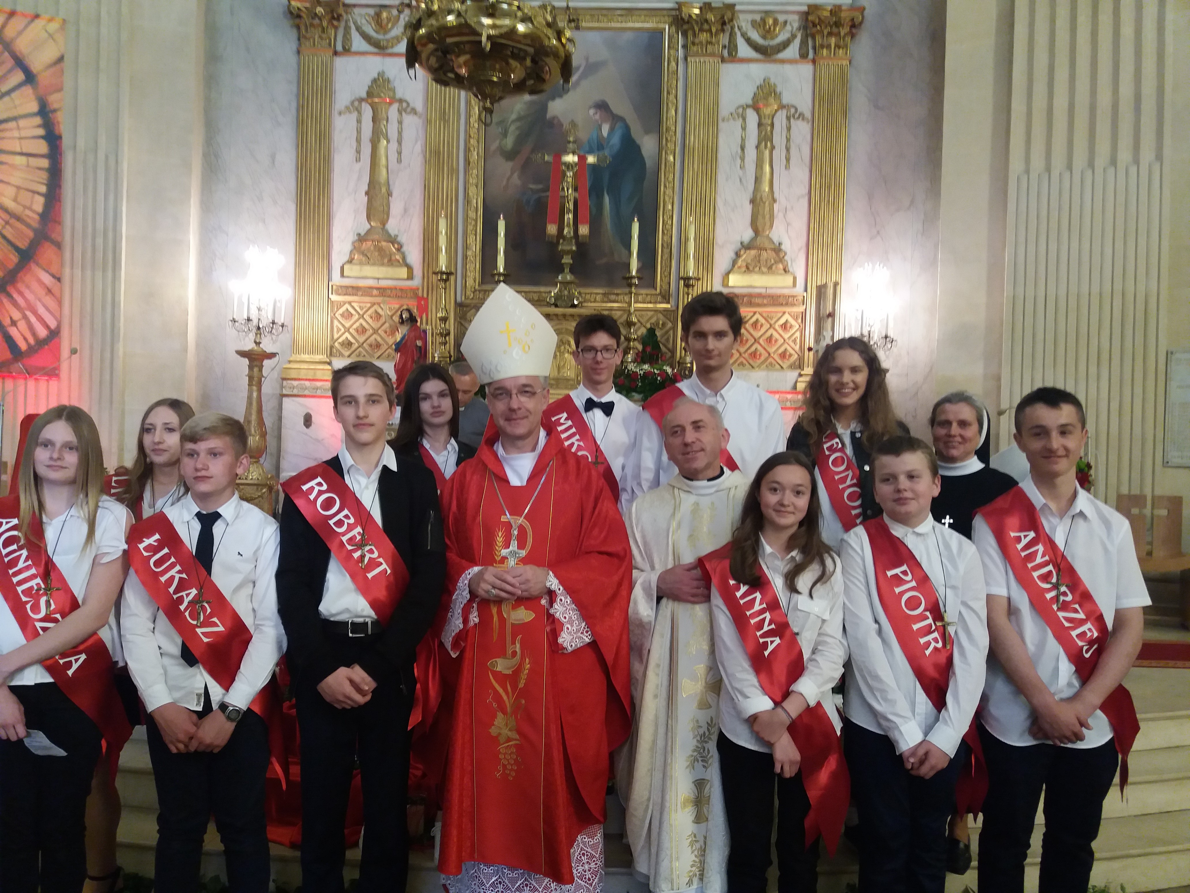 Nos enfants les plus âgés préparés par le Prêtre Marc et la Sœur Ilona , ont célébrés le sacrement de confirmation. Ce Sacrement a été célébré avec l’évêque Wiesław Lechowicz.